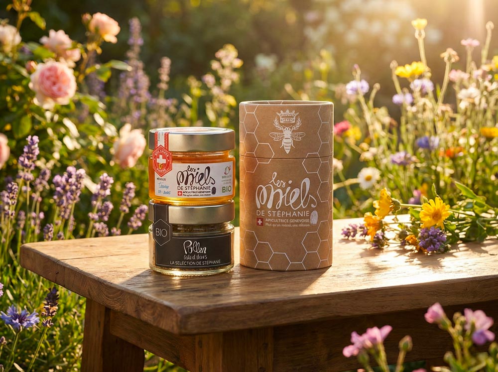 Le Coffret Bien-Être du Matin associe le miel de mai « Le Bonbon » et le pollen. Ce duo artisanal suisse offre une combinaison idéale entre douceur et vitalité naturelle. Parfait pour les petits-déjeuners et routines bien-être, il met en valeur la qualité des produits bruts issus d’une apiculture locale respectueuse.
