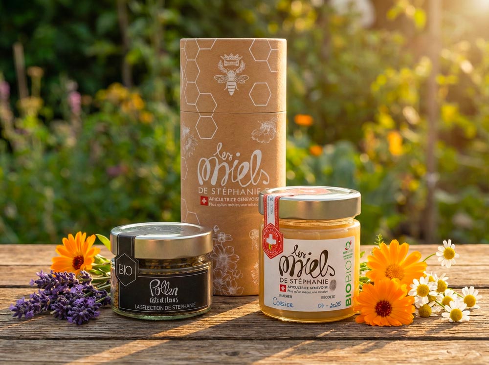 Le Coffret Force de l’Été réunit le miel de juillet « Le Superman » et le pollen. Ce coffret artisanal suisse associe intensité aromatique et bienfaits naturels pour accompagner les petits-déjeuners et routines bien-être. Une sélection parfaite pour ceux qui recherchent des produits bruts, savoureux et riches en nutriments, tout en mettant en valeur la qualité du miel suisse artisanal.